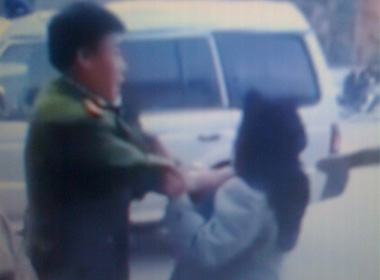 Bà cụ bị người mặc sắc phục công an túm cổ áo