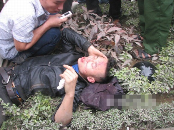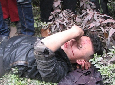 Người nhà nạn nhân Tùng cho rằng do công an truy đuổi nên anh này bị ngã xây xát ở trán, chảy máu mũi và răng.