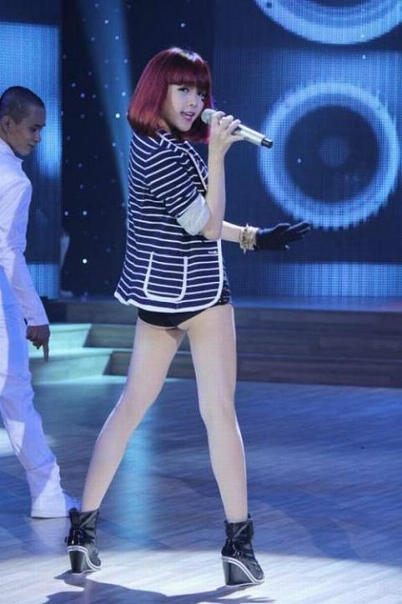 Thủy Tiên từng chịu không ít 'gạch đá' khi diện chiếc quần siêu ngắn, chất liệu mỏng lên sân khấu.