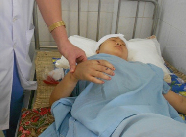 Chị M. đang được điều trị tại bệnh việnSự việc diễn ra vào 15h ngày 6/5. Do mâu thuẫn trong gia đình từ trước chị Vũ Thị M (23 tuổi, trú xã Yên Phong, huyện Yên Định, Thanh Hóa) đã bị bố chồng cầm dao chém 10 nhát vào đầu, tay khiến chị bị thương nặng phải đi cấp cứu tại Bệnh viện Đa khoa huyện Yên Định. Sau đó do tình trạng nguy kịch nên chị M được chuyển lên Bệnh viện Đa khoa tỉnh Thanh Hóa.