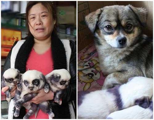 Một chú cún con có vẻ ngoài giống gấu trúc hơn là đồng loại của mình lúc sinh ra.