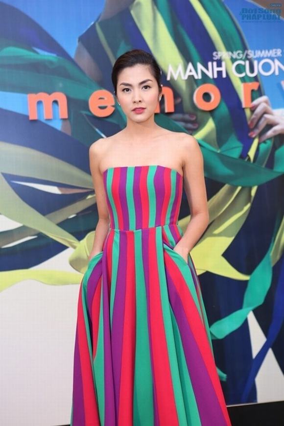 Thuộc cùng một bộ sưu tập với váy của Hà Tăng, bộ đầm trần vai của Vân Ngô lại đem cho cô vẻ ngang tàng cá tính rất riêng.