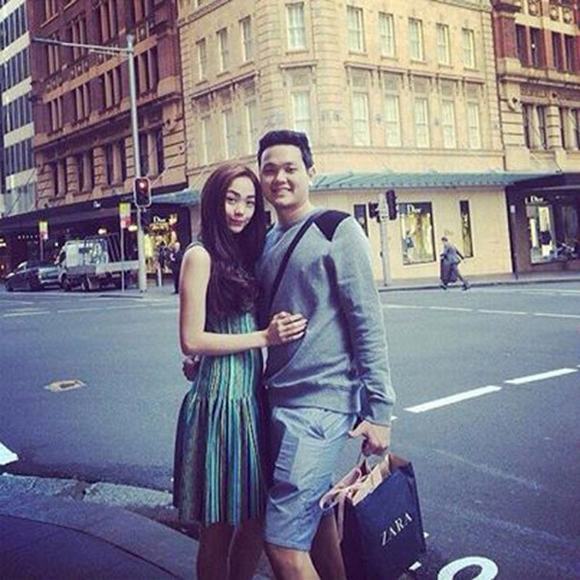 Minh Hằng trẻ trung nhí nhảnh với váy xanh sọc dọc trong một chuyến công tác nước ngoài.