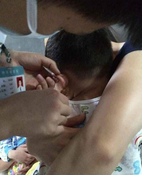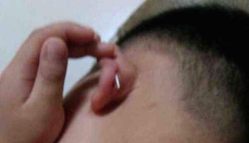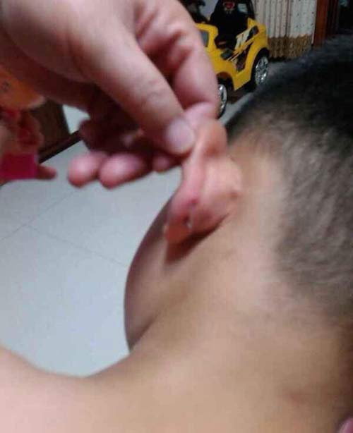 Bác sỹ xác nhận cậu bé bị đâm vào vành tai. (Nguồn: Chinadaily)